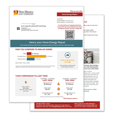 Have you received a New Mexico Gas Company Home Energy Report? Click here for more information